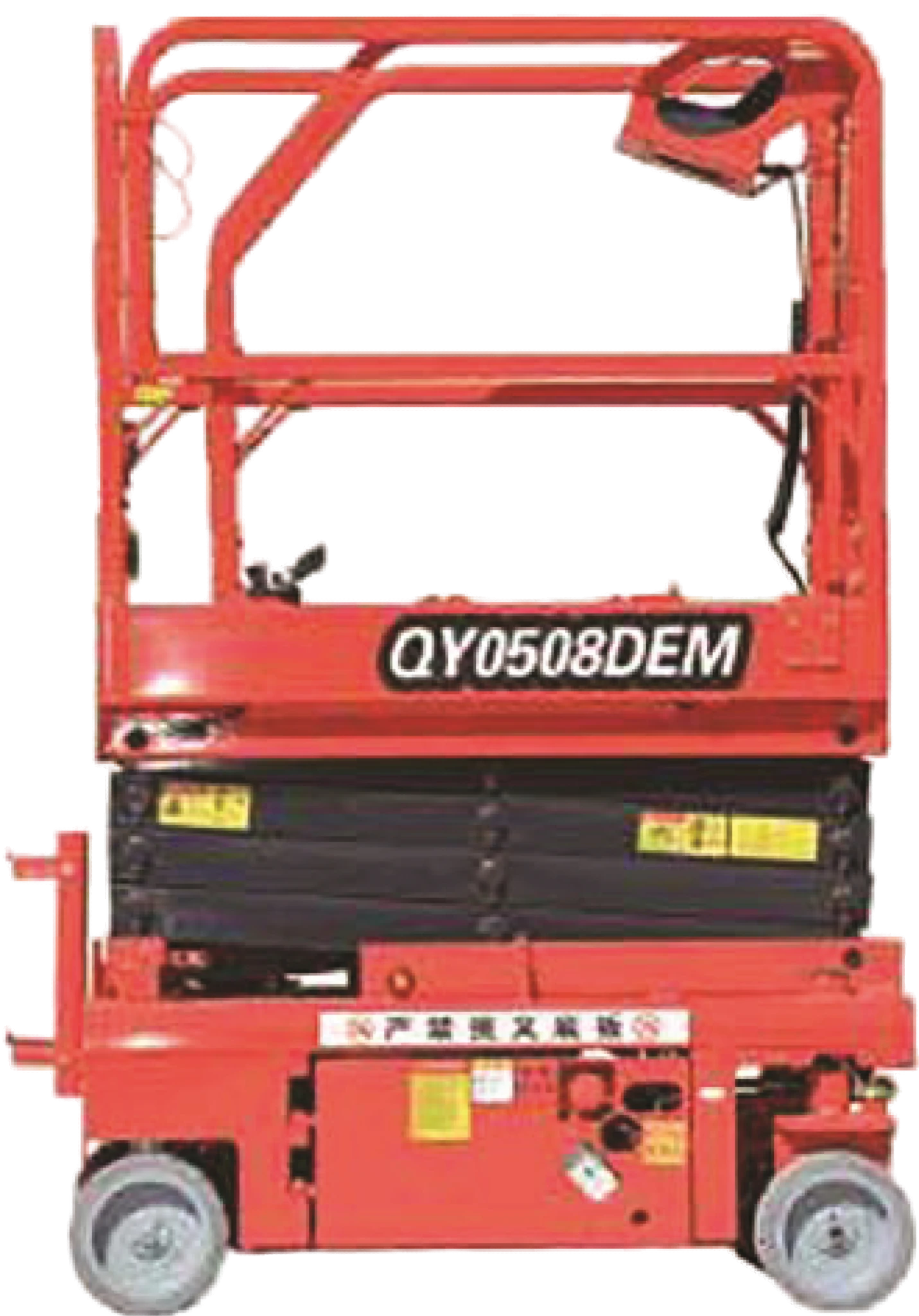 The QY0508DEM is designed for compact operations with a foldable fence, fault code display for maintenance, and excellent climbing capability.